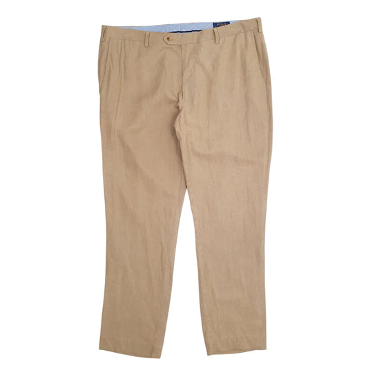 Mens Polo Ralph Lauren Vintage Andrew Pant Double Pleated Tan Chino Cotton Trousers Mens W42 L30