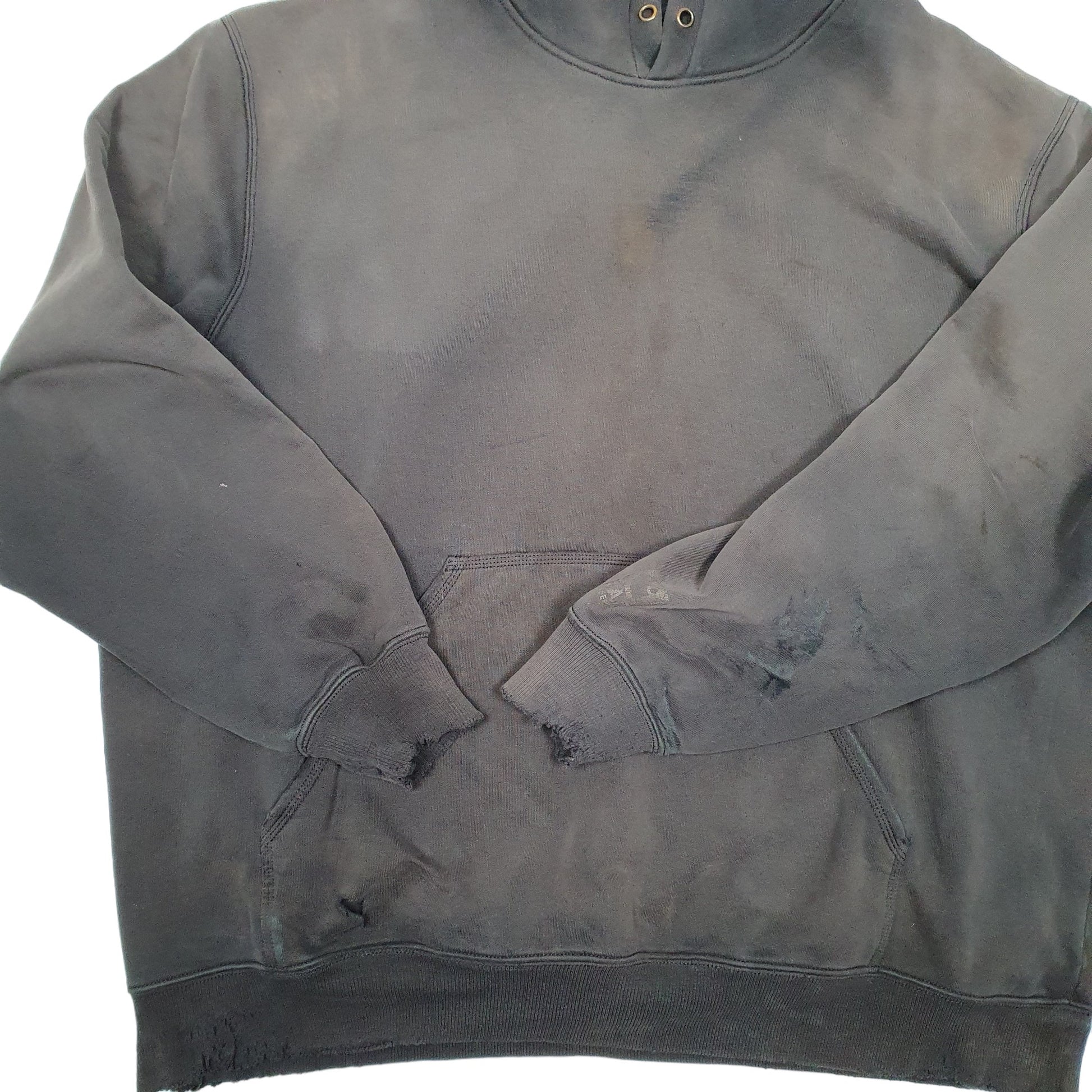 Tagged XXL but measures more like XXXL (see measurements) Fading,bleach marks throughout, wear holes to lower front & back, scuffing/ fraying to cuffs,dark marks throughout and small snags in places