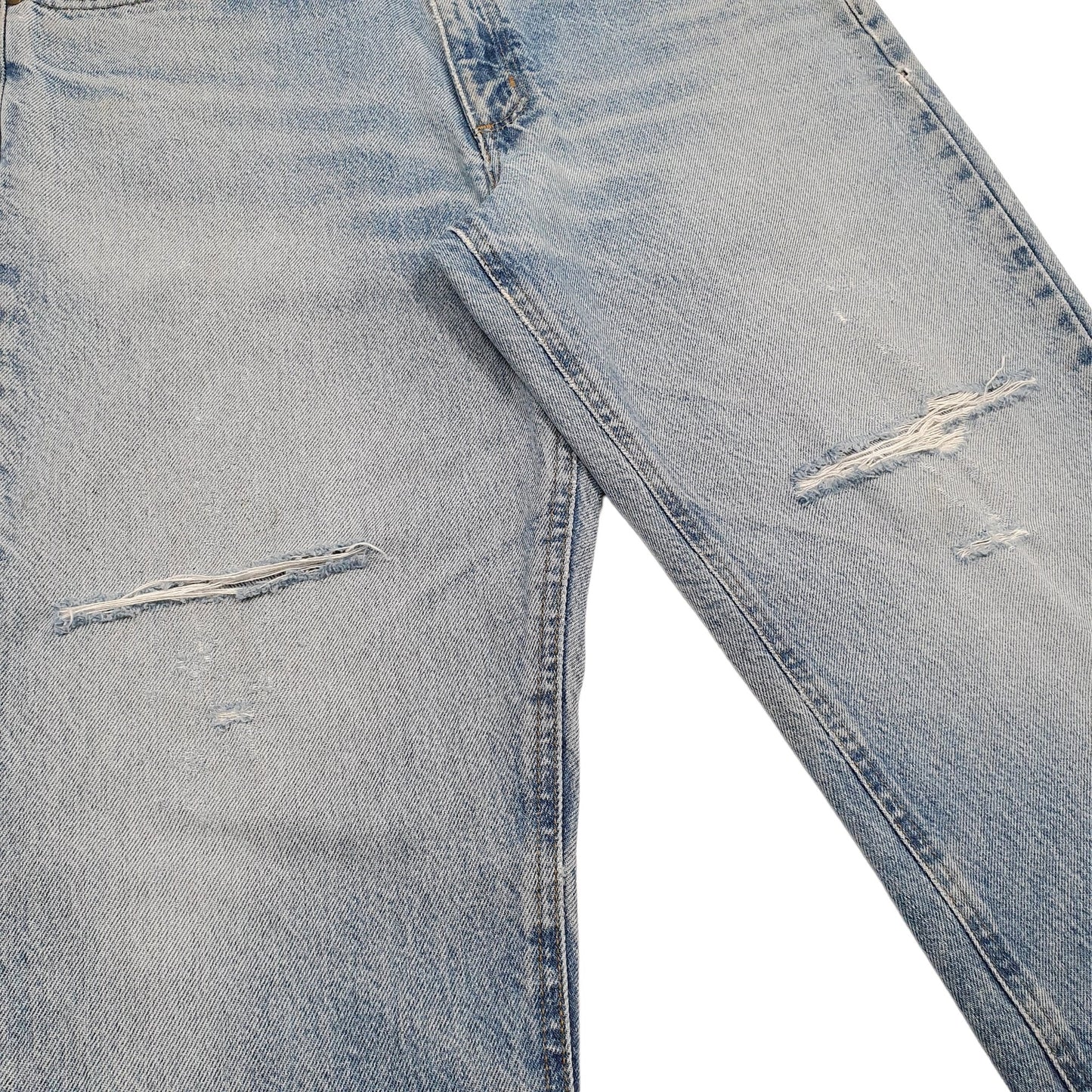 The stated size of these jeans is based on the measurements we have taken and is listed above. Due to this there is the possibility that the stated size will not match the size written on any labels.
