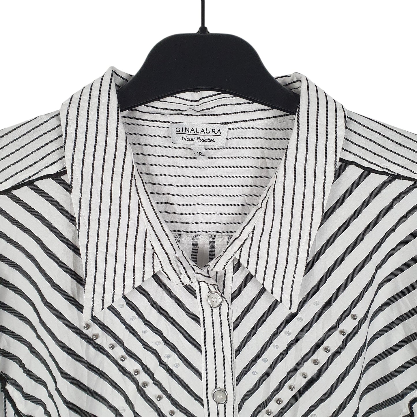Ginalaura Blouse Studded Frill Long Sleeve Regular Fit Striped Cotton Blend Shirt Womens XL