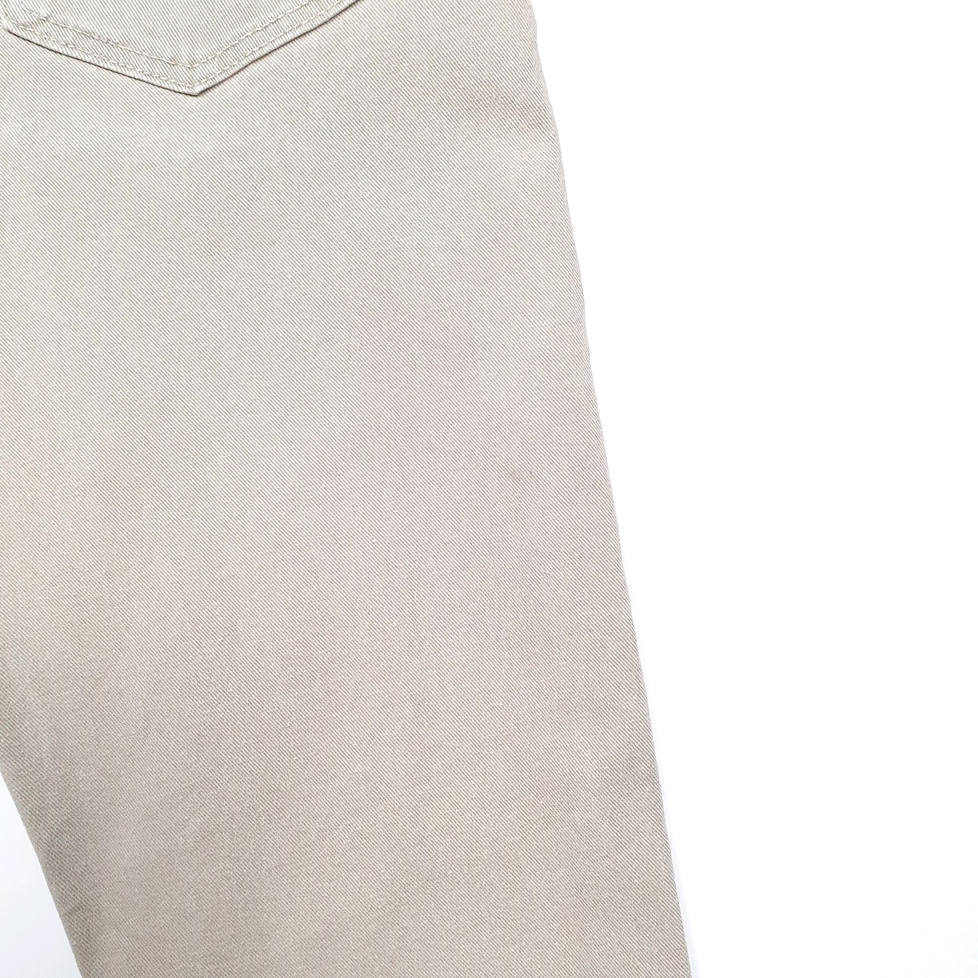 The stated size of these jeans is based on the measurements we have taken and is listed above. Due to this there is the possibility that the stated size will not match the size written on any labels.