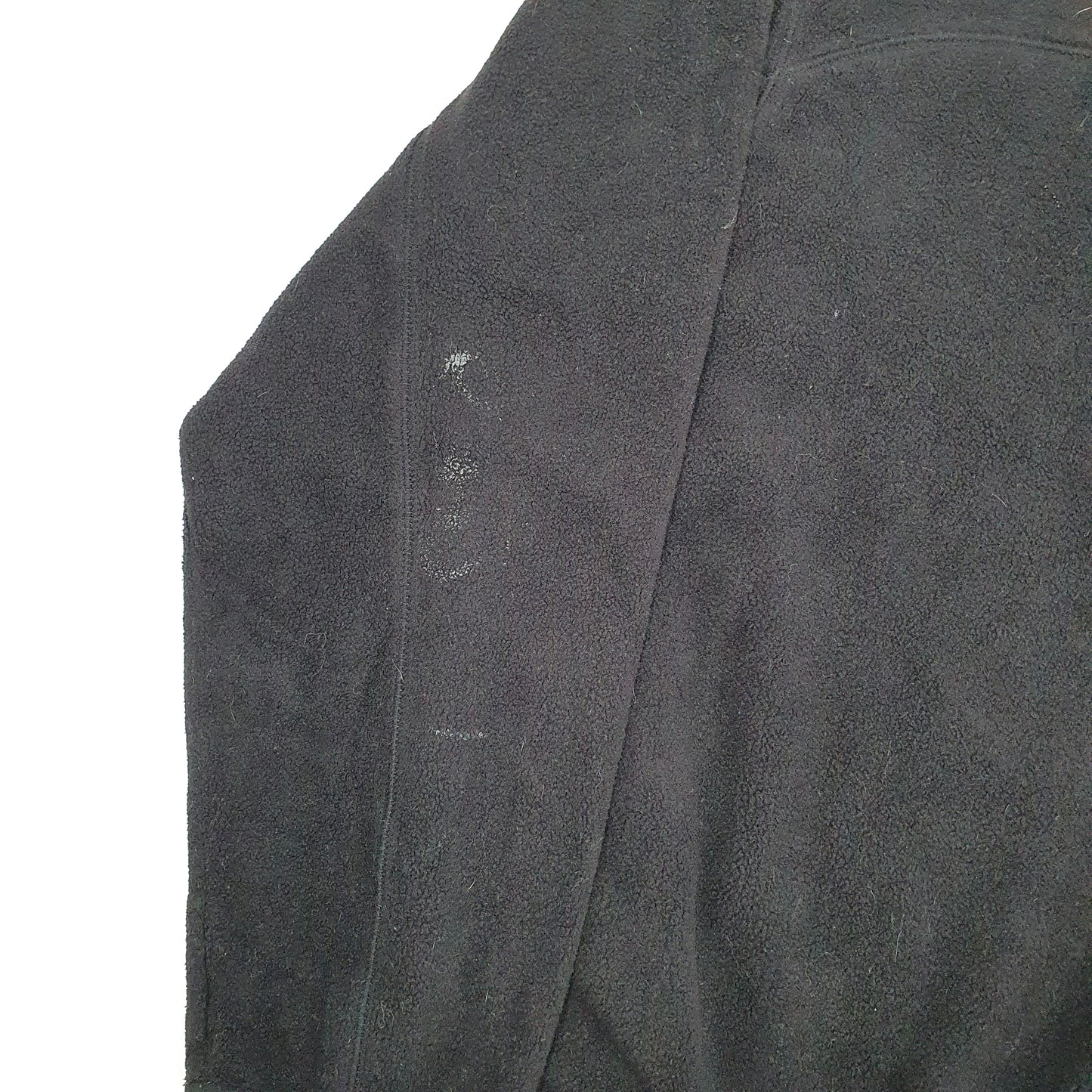 Paint stain on sleeve and other smaller marks. Some lint stuck in fleece