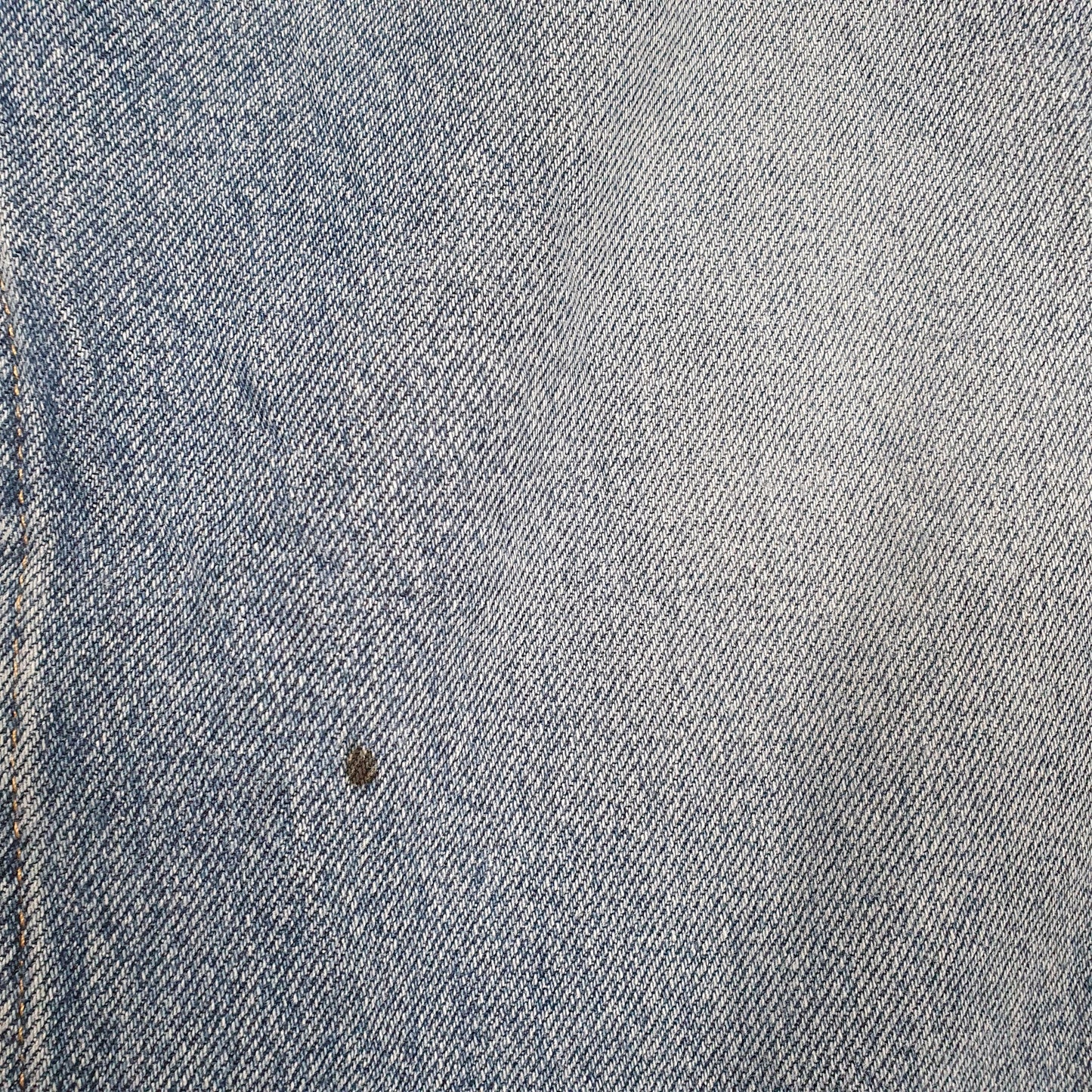 Some small marks to lower left leg, light fading throughout and some wear at hems.